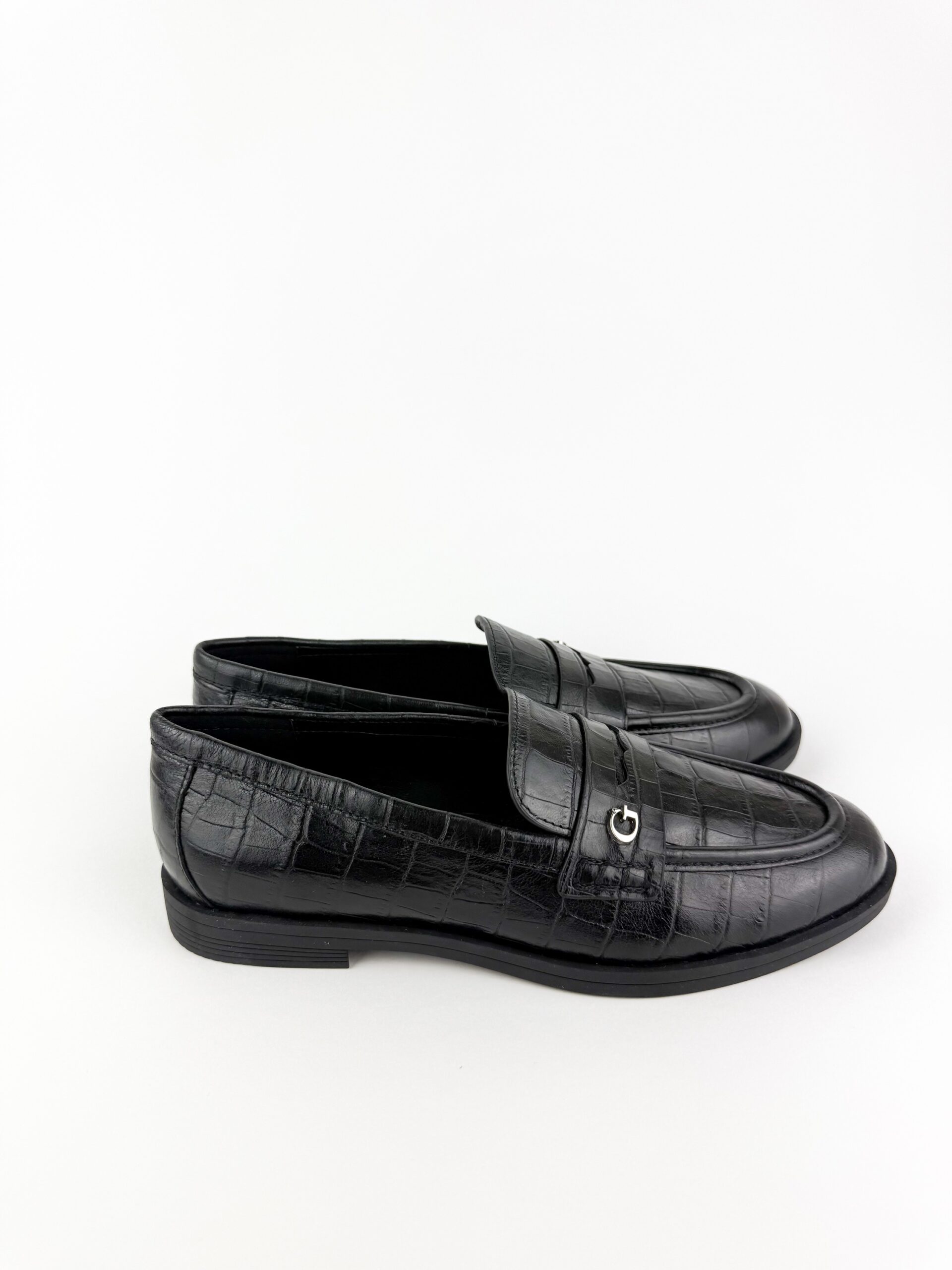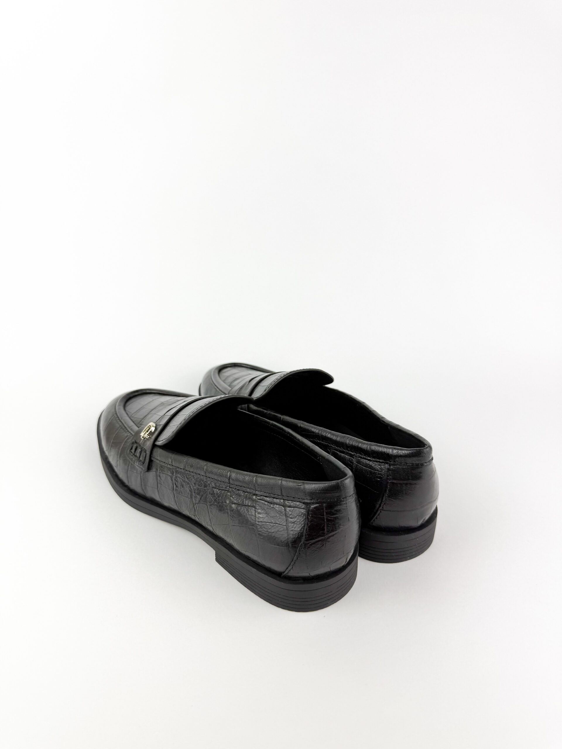 Colore: Nero Materiale: Pelle Naturale Stampa Cocco Suola: Gomma Antiscivolo 2 cm Soletta: Pelle Imbottita Calzata: Regolare