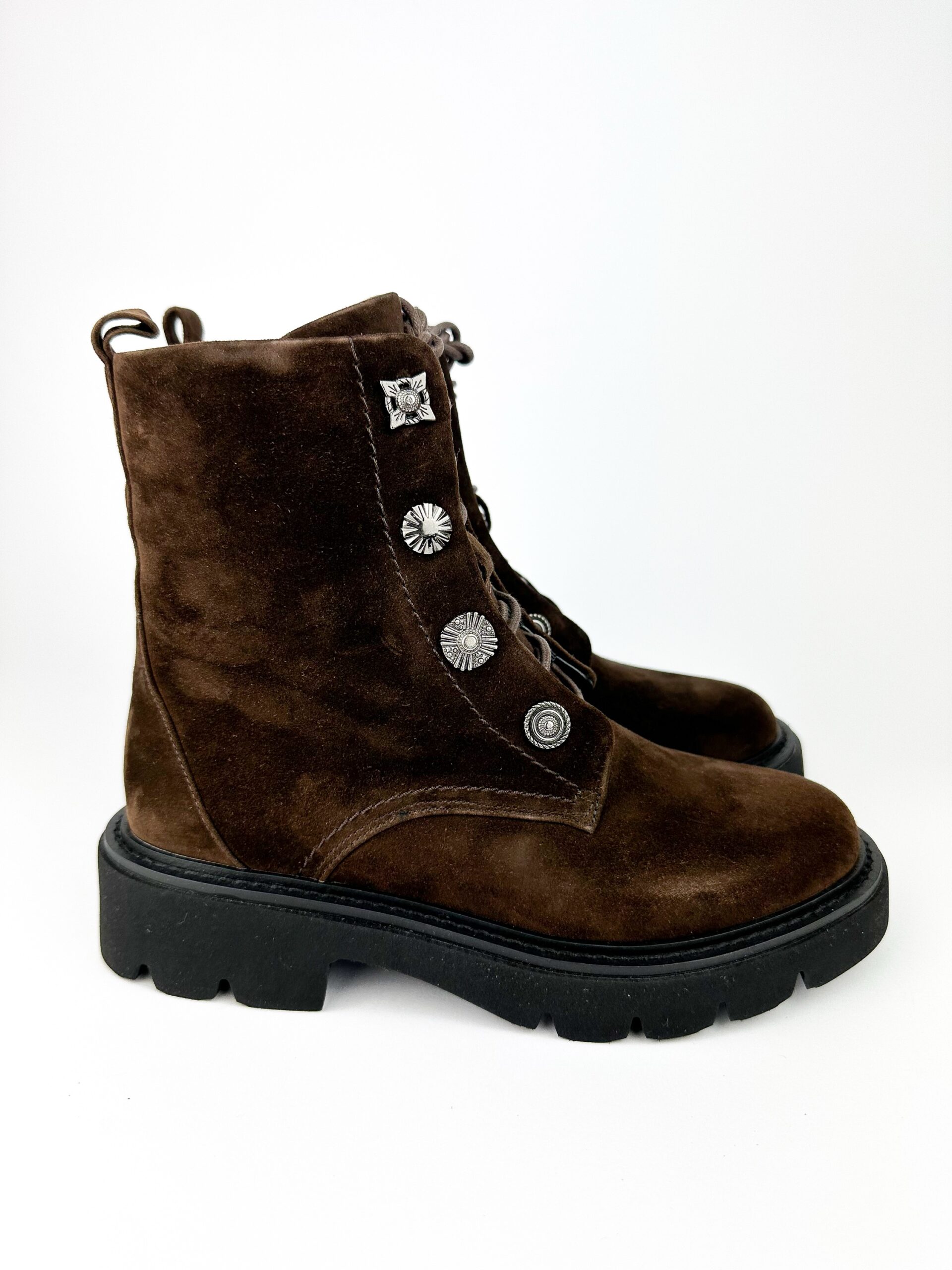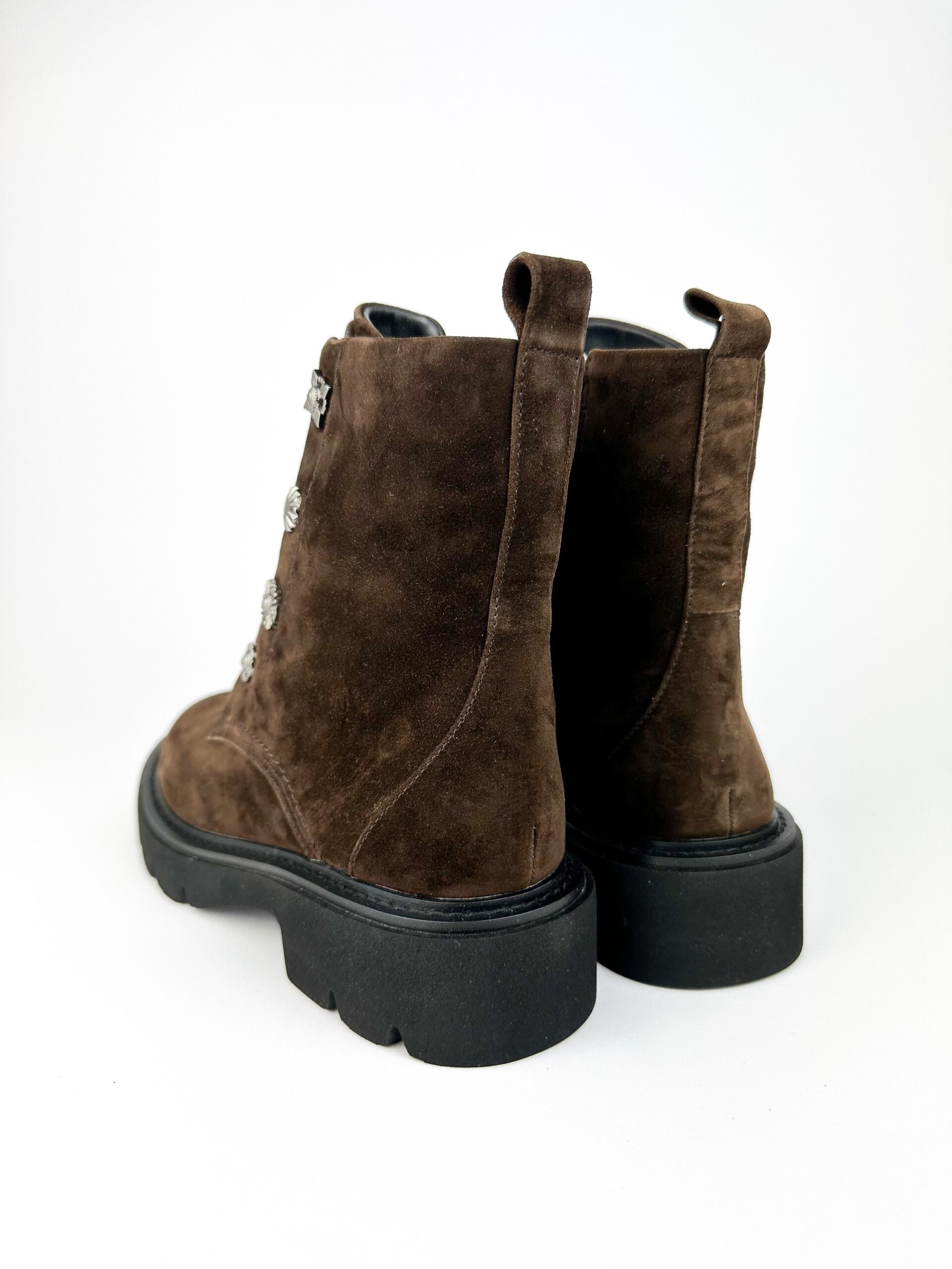 Colore: Testa di Moro Materiale: Pelle Scamosciata Suola: Gomma Antiscivolo tacco 4 cm Soletta: Poliestere e tessuto Calzata: Regolare